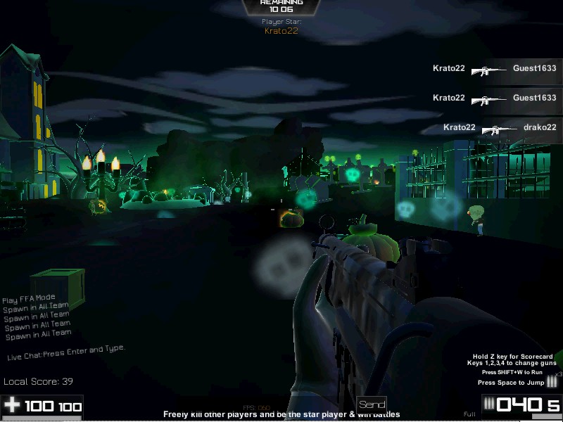 Parádní deathmatch, kde vás ohrožují nejen ostatní hráči ale i spousta zombií a dalších haloweenských potvor. Pobijte, co můžete, a zkuste sami přežít co nejdéle.