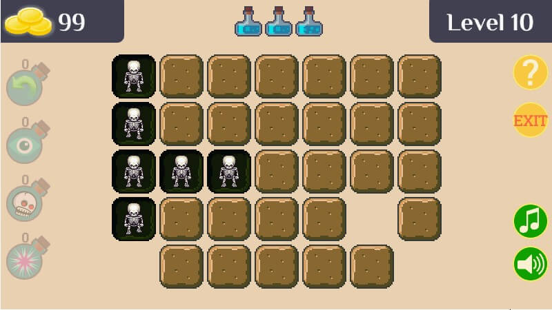 Haloween se trošičku vymkl z rukou. Na hřbitovech ožívají mrtví a tak si občané městeček pozvali vás - necromancera, abyste jim pomohl problém vyřešit. Problém je v tom, že máte pouze omezený počet lektvarů a můžete uzavřít jen do kříže položené hroby