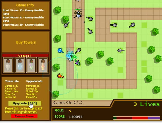 Příjemná Tower defense, ve které se snažíte ubránit svoje území před loupeživými skřety. Za každého přemoženého získáváte zlaťáky za které můžete pořídit další a lepší obranné prostředky.
