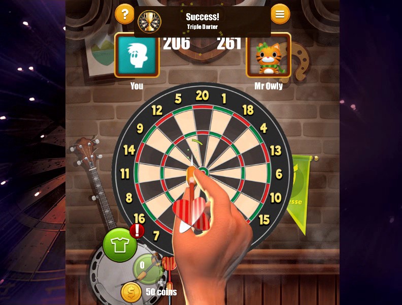 Příjemné šipky s klasickým systémem 301. Hrát budete proti různým zvířátkům a každé další je šikovnější, než to předchozí, takže jim musíte ukázat, kdo je opravdový šipkový velmistr.