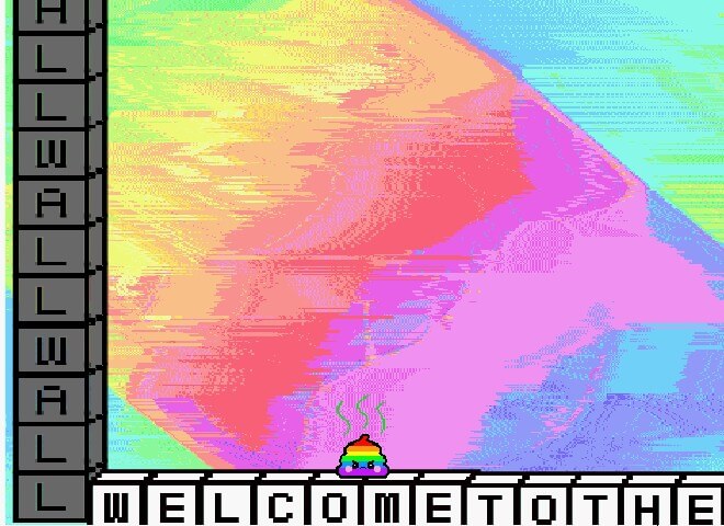 Duhové hovínko je přesně ten typ hrdiny, kterého jste vždycky chtěli, jenom jste o tom nevěděli. Snažte se projít celým levelem až tam, kam takové hovínko patří - do záchodu.