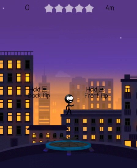 Při skákání na trampolíně je důležitý dobrý odraz a ještě lepší dopad. Obzvlášť tady, kde špatný dopad končí rozkladem stickmana na prvočinitele. Naopak, když po saltu dopadnete dobře, dosáhnete odrazu pro ještě větší výšku.