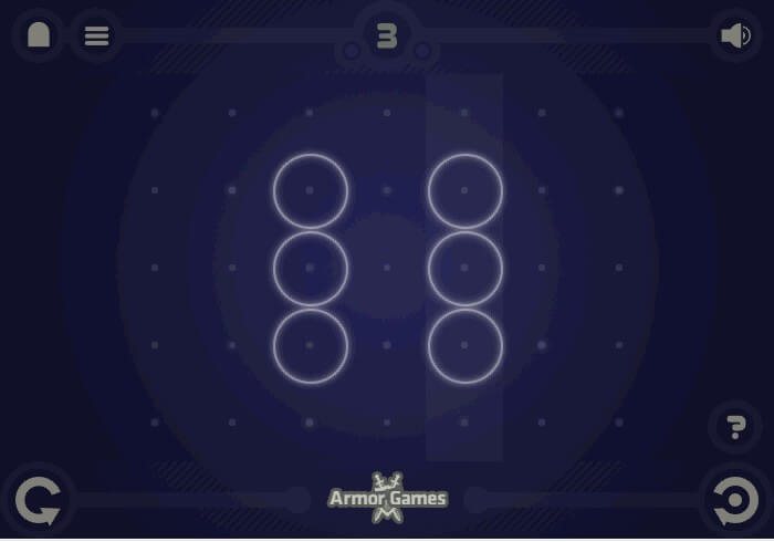 Otáčejte disky tak, aby šipky ukazovaly vzhůru. Můžete otáčet vždy jen celý řádek nebo sloupec. Modré disky se otáčí doleva a červené doprava.